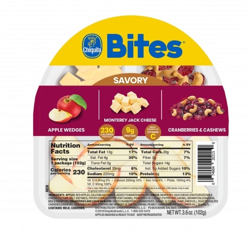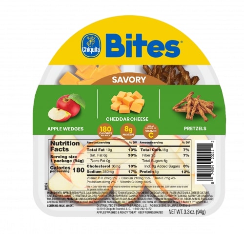 Snack time just got a little healthier with savory “Bites” from Chiquita. This protein-packed snack features perfectly portioned apples, Cheddar cheese, and sea salt, multi-grain crackers to keep you satisfied until lunchtime, guilt-free!