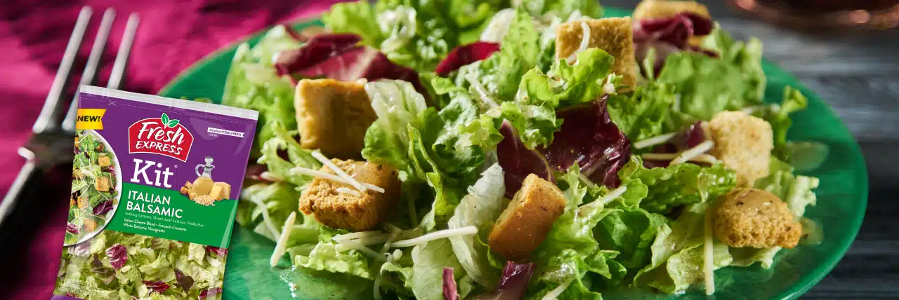 Have you tried the NEW Fresh Express® Italian Balsamic Salad Kit®? Crispy iceberg and green leaf lettuce, flavorsome radicchio, the very best Italian cheese blend, crunchy focaccia croutons, and our delicious white balsamic vinaigrette combine to bring the taste of Italy to you.
