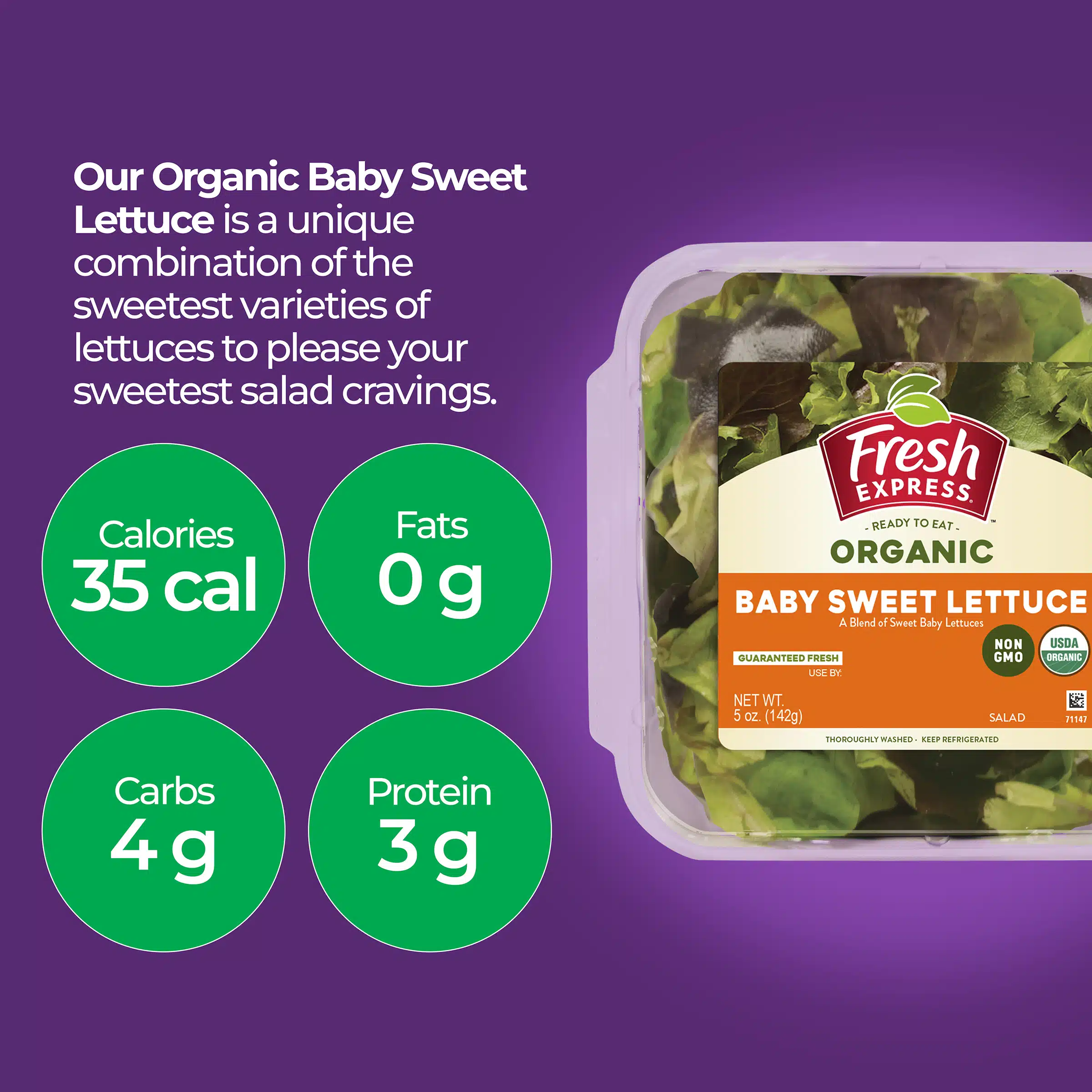 Our Organic Baby Sweet Lettuce is a unique combination of the sweetest varieties of lettuces to please your sweetest salad cravings.