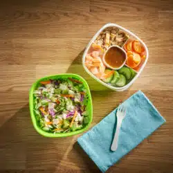 Looking for something different? Try a fusion of diverse flavors and textures in your next salad. This Chopped Asian Salad Kit™ packs a crunchy punch with crisp romaine and green cabbage, sweet carrots, green onions. Topped with crispy wontons, sliced almonds, and delicious Asian sesame vinaigrette for added layers of flavor and crunch.