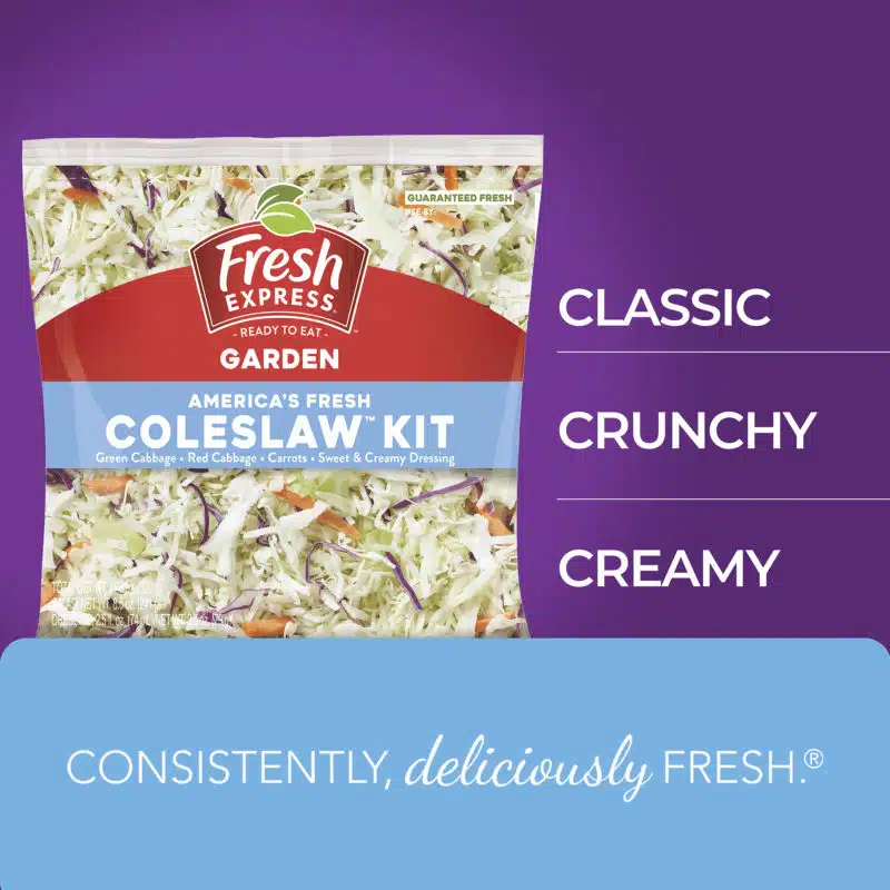 Our complete Coleslaw Kit has everything you need. It features fresh green and red cabbage with carrots, all tossed in our signature sweet and creamy dressing. Just mix and enjoy.