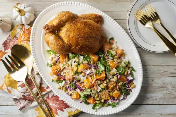 Thanksgiving Roasted Chicken with Sunflower Crisp Chopped Salad