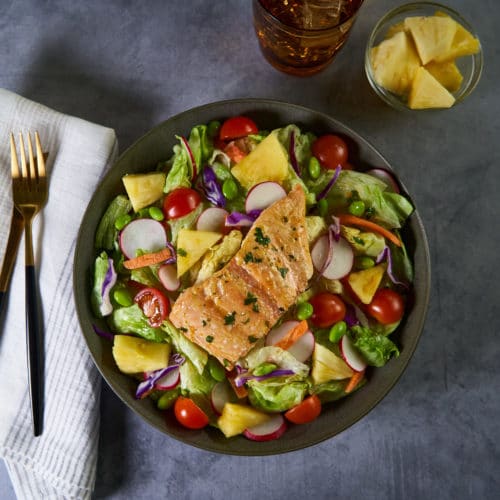 Place Fresh Express® Iceberg Garden Salad Blend in a large bowl; add pineapple, tomatoes, edamame, and radishes. Drizzle with desired amount of dressing; toss to coat.